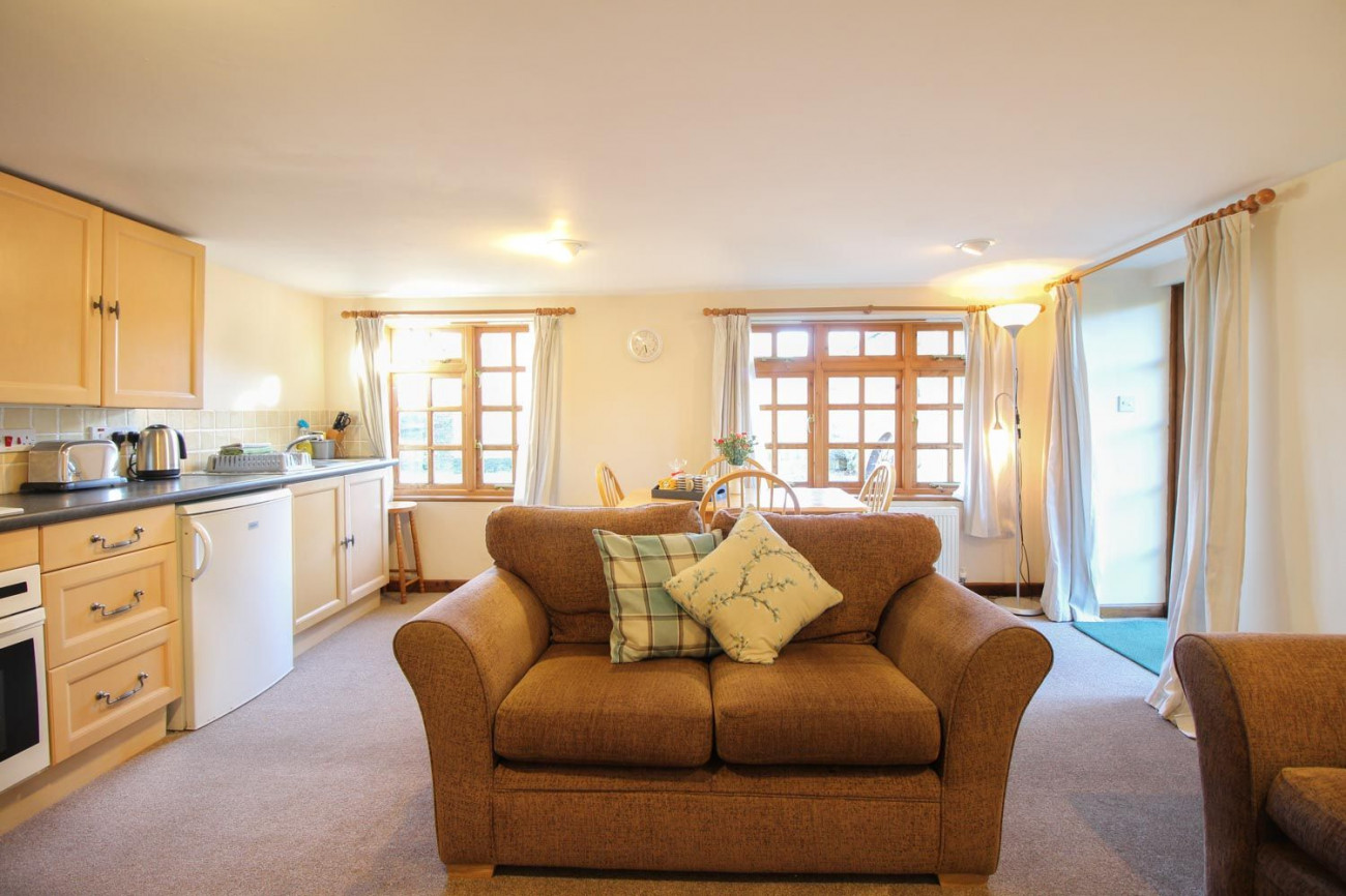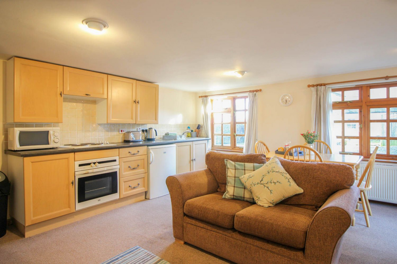 There is an oil-fired heating system. The kitchen has a range of cupboards & worktops. There is an electric oven and hob, a microwave, toaster, kettle and under-counter fridge with icebox. There is a communal laundry room that is shared with other holiday lets at the farm that includes a number of washing machines and tumble driers. The sitting room has a digital TV & DVD player. There is an iron & ironing board available on request. There is unlimited WiFi. Ponies, pigs and lambs (Spring time only) can be seen on the farm and available to pet. The fishing lake is open for coarse fishing where there are Carp, Tench, Roach and Rudd. There is a small communal children’s play area.