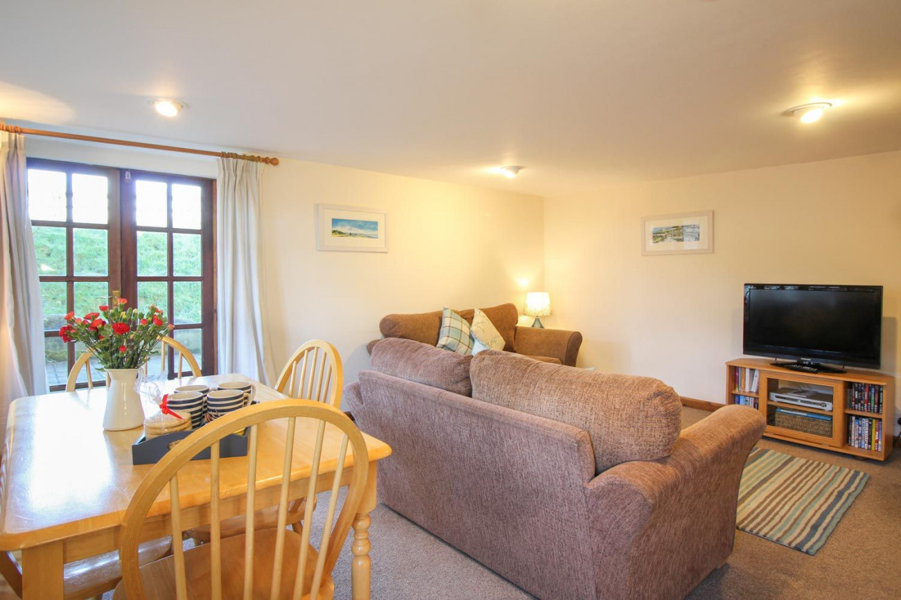 Honeysuckle Cottage is a single level, detached 2 bedroom cottage, converted from a traditional Cornish cob barn with a rag slate roof. The open plan living/dining area is comfortably furnished and French doors lead out into a secluded patio garden.